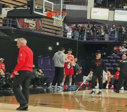 开拓者的总经理克罗宁和主教练斯普利特也来了,现场看看杨瀚森的适应情况。