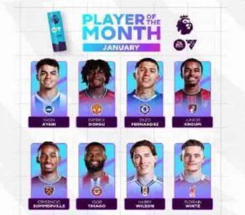 多尔古和库尼亚在对阵阿森纳比赛中的进球入围英超1月最佳进球候选;